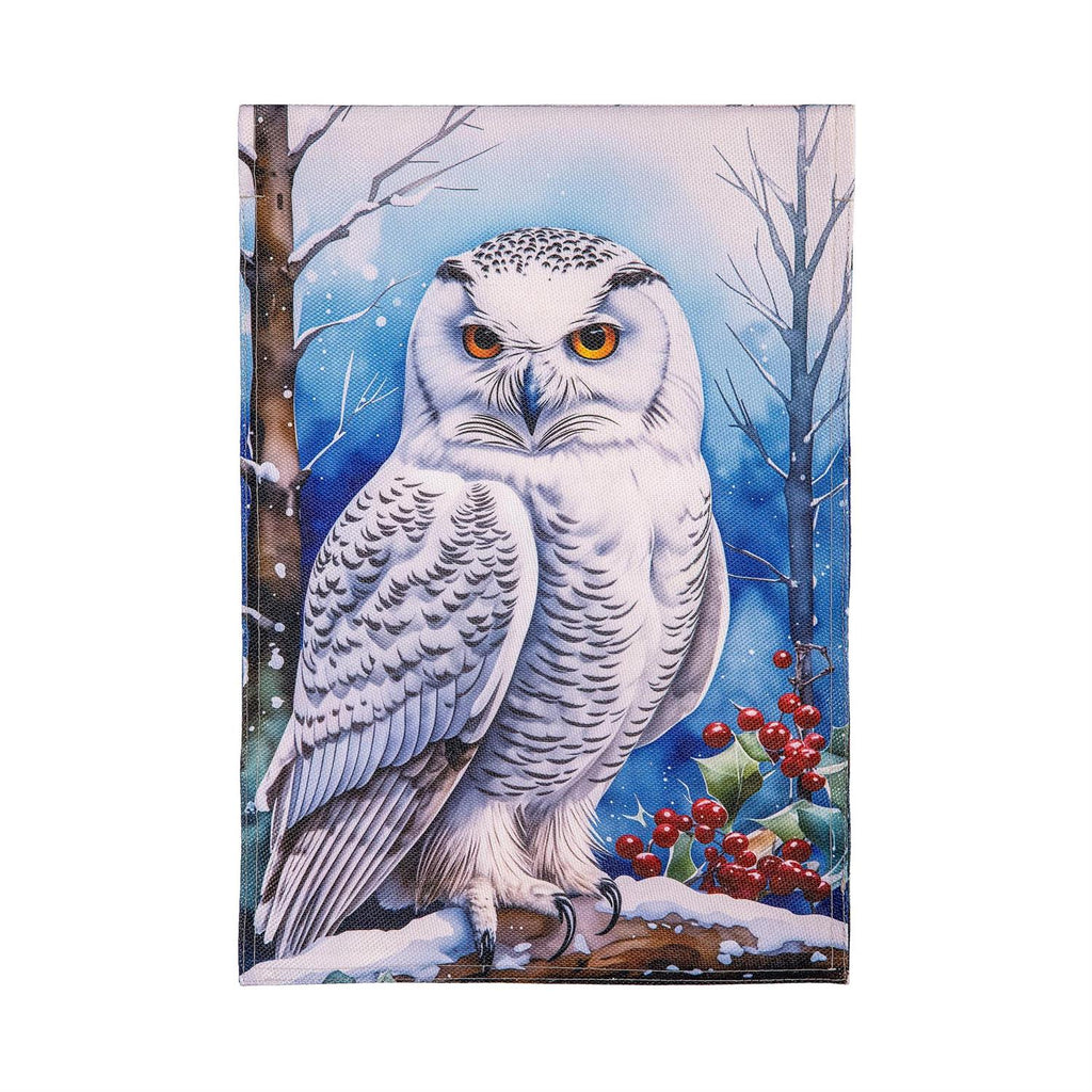 Add magic and wonder to any garden or yard when you hang up this beautiful flag. Featuring an adorable snow owl, this flag is perfect for the festive season. This flag is made of medium-weight, soft burlap fabric that's made from recycled plastic that has the look and feel of real burlap. Artwork is heat transferred onto both sides of the textured fabric to create a natural, crafted look. The flag is durable and weatherproof and will not fade or fray after continued display. This flag features a sleeve for use with any standard flagpole or stand, sold separately.