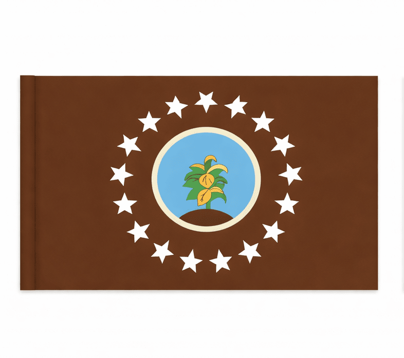 As part of the Ohio Sesquicentennial celebration in 1953, the Brown County Historical Society sponsored a flag design contest among the county's fourth grade students. Professor Hodge and his Wilmington College art class chose the winning drawing by Jerry McKenzie and Kenneth Brookbank from the Higginsport School. The field of brown represents the fertile soil and the name Brown County. The yellow circle stands for "O" in Ohio. The stalk of burley tobacco represents the money crop of the county. Every year, the Tobacco Festival is hosted here during August. A tobacco plant is featured on the flag, surrounded by 16 stars. Brown county was established in 1818. It was named for Jacob Brown, a general in the War of 1812.