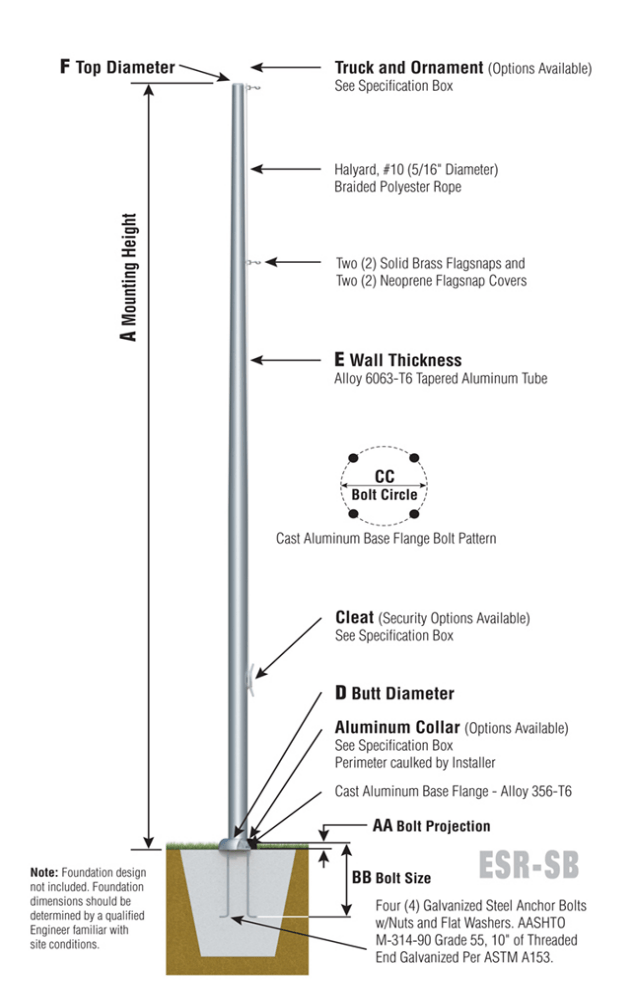 There are many features of this pole that can be upgraded if you desire (i.e. flagpole lighting, eagle toppers, additional security features, etc.). If you are interested in any of these features, please contact us and a member of our team will walk you through all of the available options.