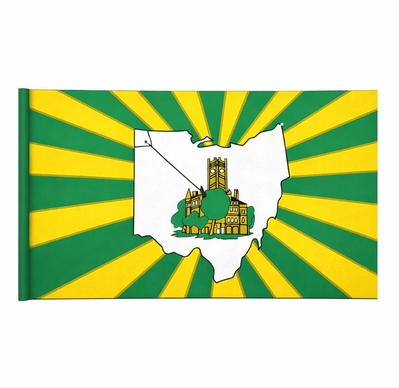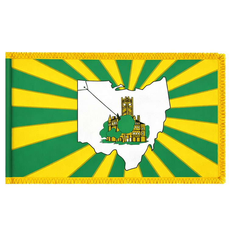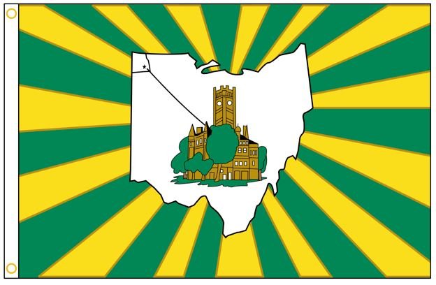 The idea for a Williams County Flag was brought up by the Williams County Commissioners in 1989. The County would be celebrating the 100th anniversary of the current Williams County Court House, and several celebratory events were being planned. The Commissioners sponsored a contest for the flag supervised by the Williams County Schools Office. Along with the flag design the student needed to give the reasons for the design, colors, meaning, etc. Hundreds of entries were submitted. A panel of judges from the Williams County Schools chose the winner. The original design of the new flag for Williams County was made by Greg Stuckey of Alvordton, Ohio, a six grader at North Central Schools. Greg received a full size flag and a Savings Bond given by the Williams County Commissioners. The rays from the Court house are green and yellow with Williams County in blue in the northwestern corner of Ohio. Greg says of the flag, "Williams County is a fairly large farming community. The golden stripes stand for the golden rays of the sun needed to ripen the green fields to golden corn and wheat and other crops that grow from the rich brown soil. As the top most county in Ohio, Williams County is illustrated in blue as the blue sky tops off a beautiful day. The Court House stands for our rich heritage and history of Williams County as well as our rights and responsibilities as citizens of Williams County, the State of Ohio and the United States of America." Due to cost restraints the County is now shown in green but the meaning remains the same. Established in 1820, the county is named for soldier David Williams who helped capture British spy, John Andre in the Revolutionary War.