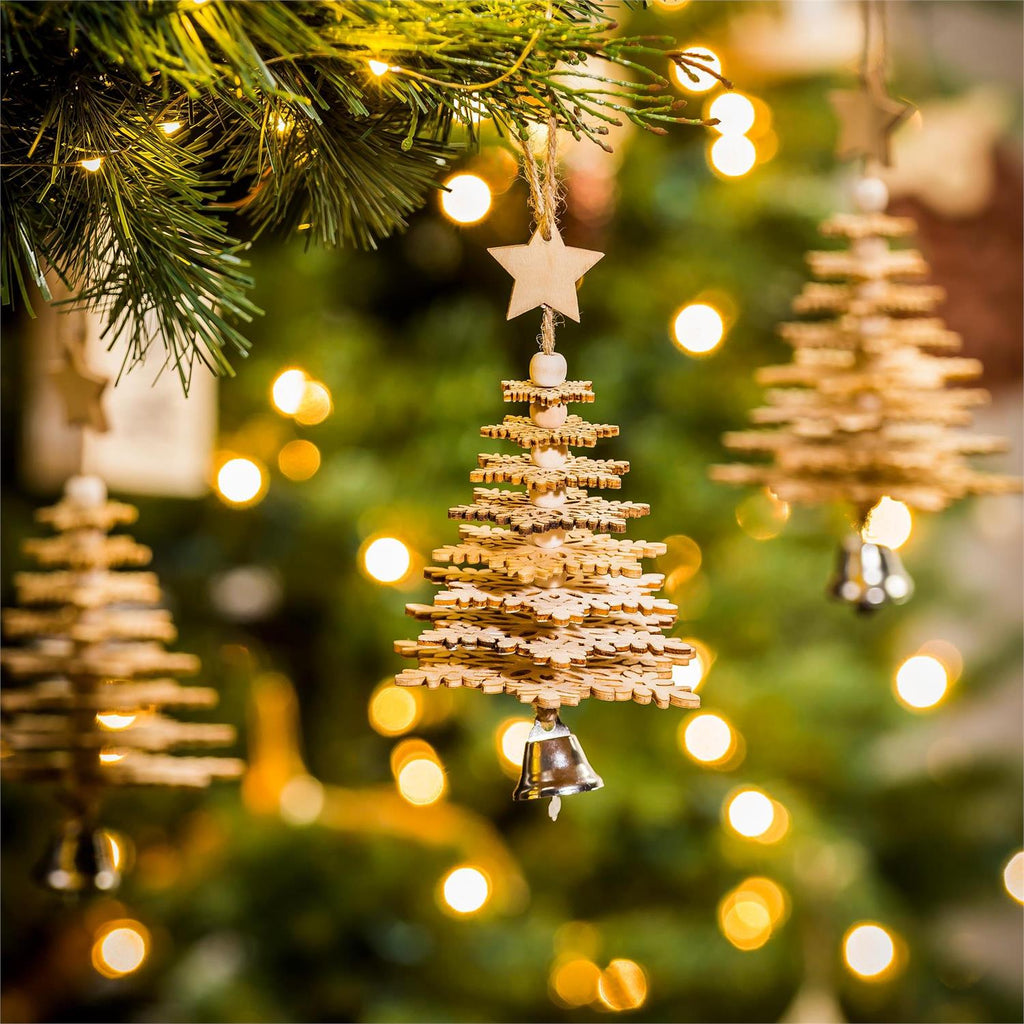 Celebrate the holiday season with this rustic-chic wooden Christmas tree ornament. Its 3D composition and delicate detail ensure it will be a treasured keepsake for many Christmases to come. Give it as a thoughtful gift or display on your own tree. The ornament features a tiny metal bell at the bottom and hangs from a piece of twine.